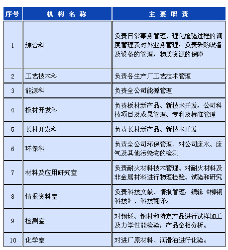 技術(shù)中心成立于一九九九年元月,當時柳鋼的實際情況,把原有的鋼鐵研究所、技術(shù)能源處 、環(huán)保管理處三個單位合并,組建了公司技術(shù)中心,并于同年7月被認定為自治區(qū)級技術(shù)中心。根據(jù)技術(shù)中心現(xiàn)有職工116人,設有10個管理和研究科室。其中研究生學歷14人、本科學歷53人,大中專學歷38人、技校。從事冶煉、軋鋼、金相、金屬材料及熱處理、粉末冶金、化學分析、環(huán)保技術(shù)、非金屬材料、耐火材料等專業(yè)技術(shù)人員54名,其中高級職稱33人,中級職稱26人,初級職稱9人,獲聘公司技術(shù)專家7人、公司學科帶頭人10人。